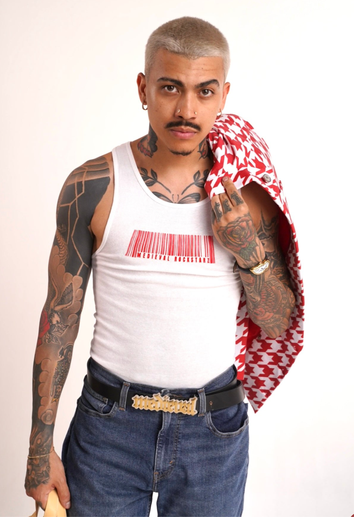 Crafted from thick, premium cotton, this unisex tank top delivers a heavyweight feel with elevated comfort. Designed with a clean, minimal silhouette, the piece is finished with a bold barcode-inspired “Medieval” graphic that gives it a futuristic yet timeless edge. Built for layering or standalone wear, it balances streetwear utility with premium craftsmanship.